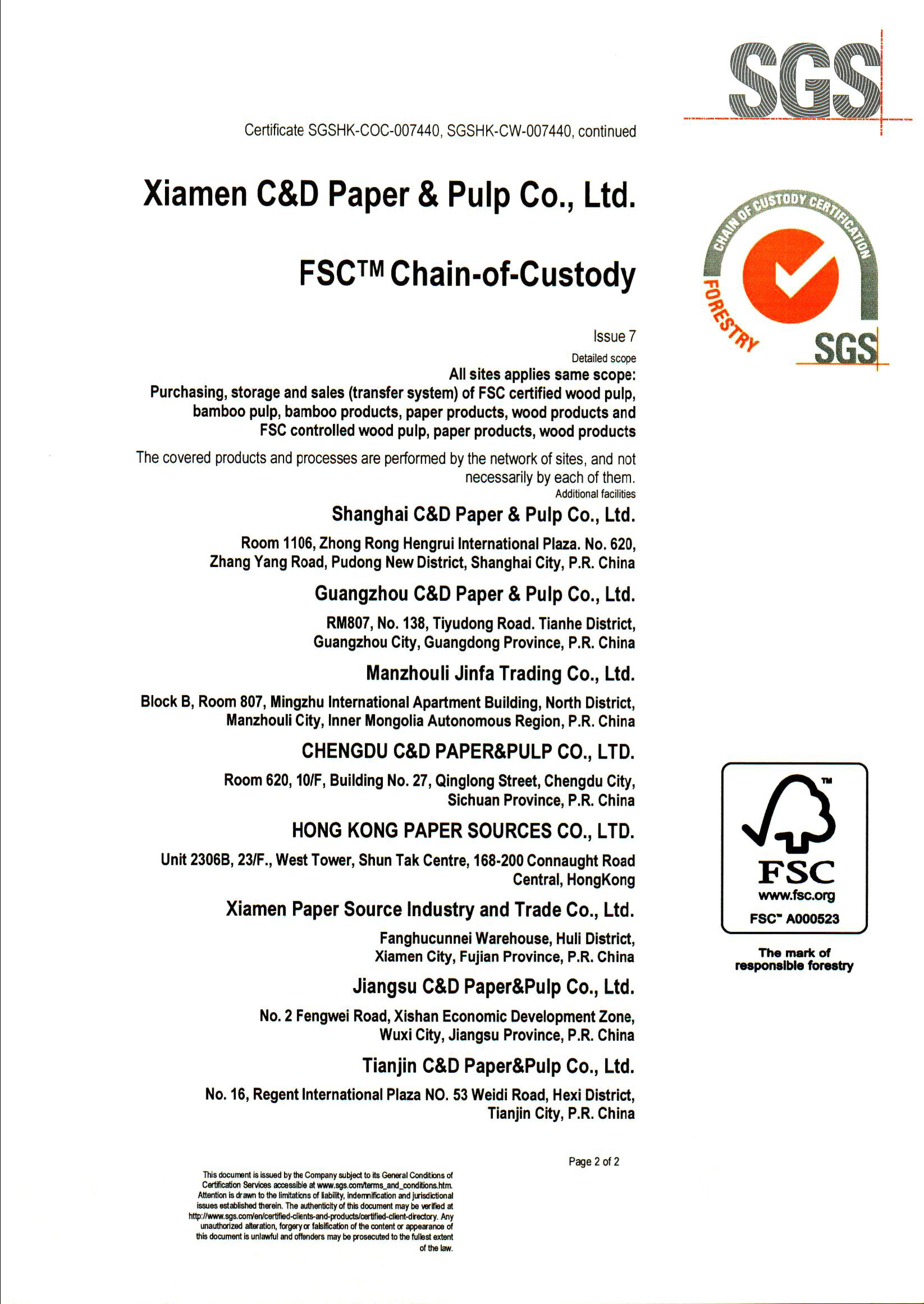 订购 / 运输 / 保险 / 仓储 / 配送 / 融资等“一站式”林浆纸供应链综合服务,并通过FSC-COC产销监管链认证。